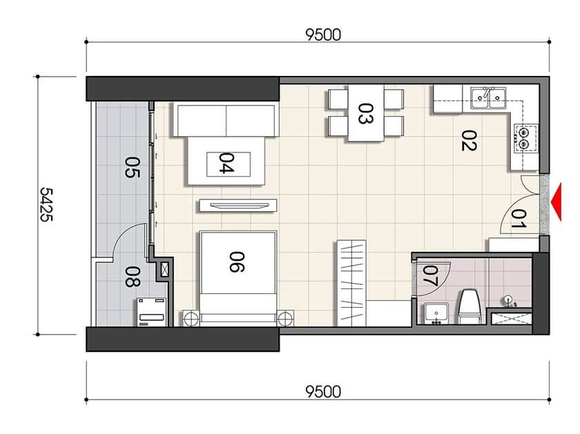 - Căn hộ 01PN: Thích hợp cho những cặp vợ chồng trẻ, người độc thân