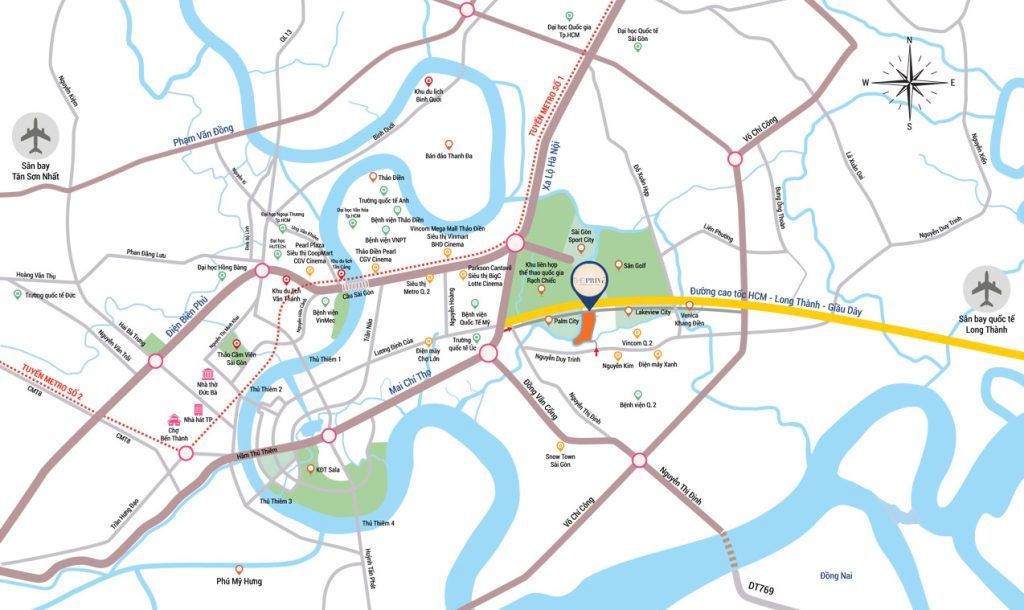 Với địa chỉ như vậy mà cư dân của dự án sẽ dễ dàng trong việc kết nối tới KĐT Thủ Thiêm; trung tâm quận 1 chỉ trong khoảng thời gian vài phút bằng các tuyến đường quan trọng, tuyến Metro và cả đường thuỷ.